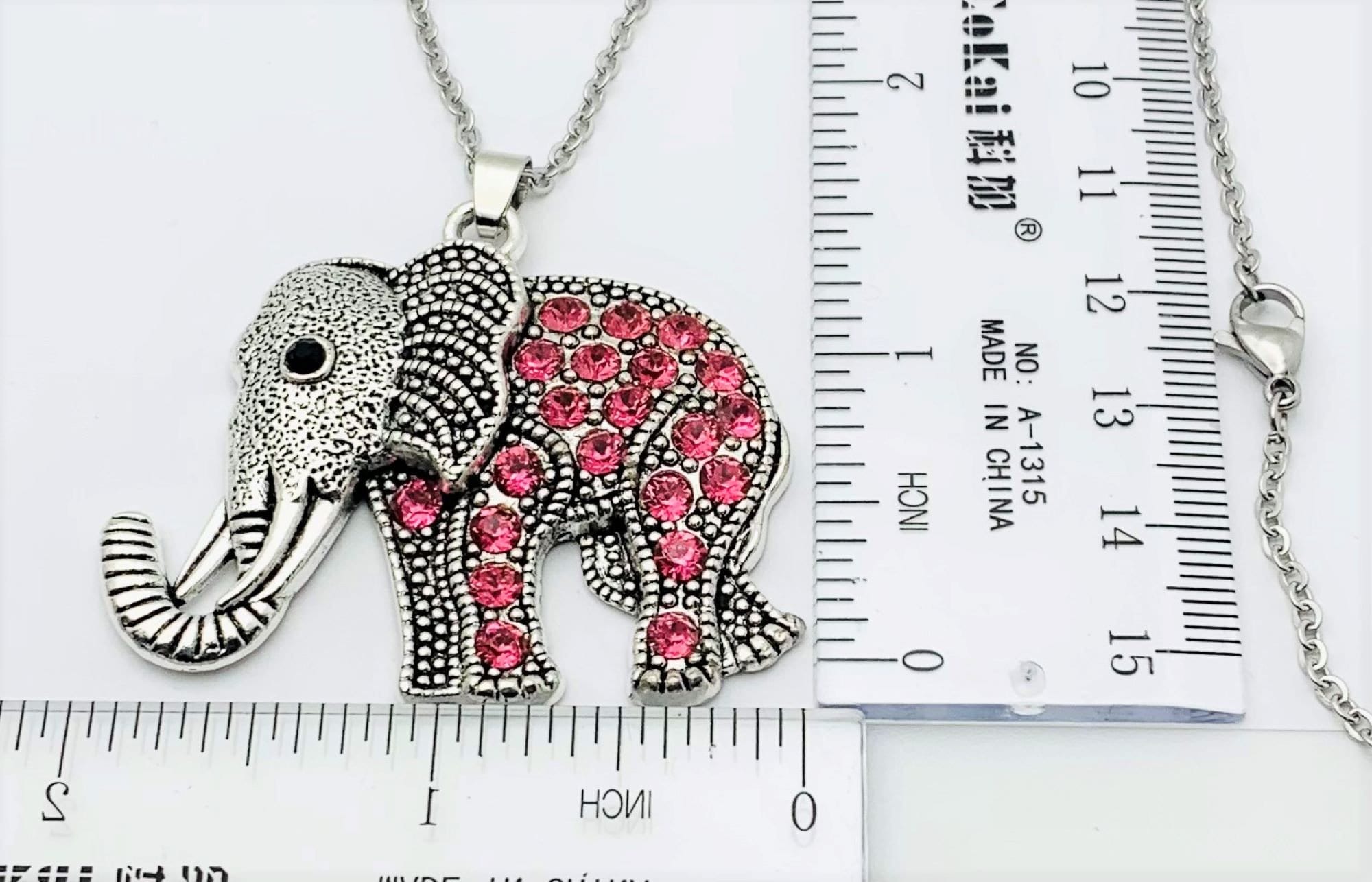 Tibetan Style Pink Rhinestone Elephant Pendant Necklace (pendant size 1.69"Long X 2.00"Wide)
