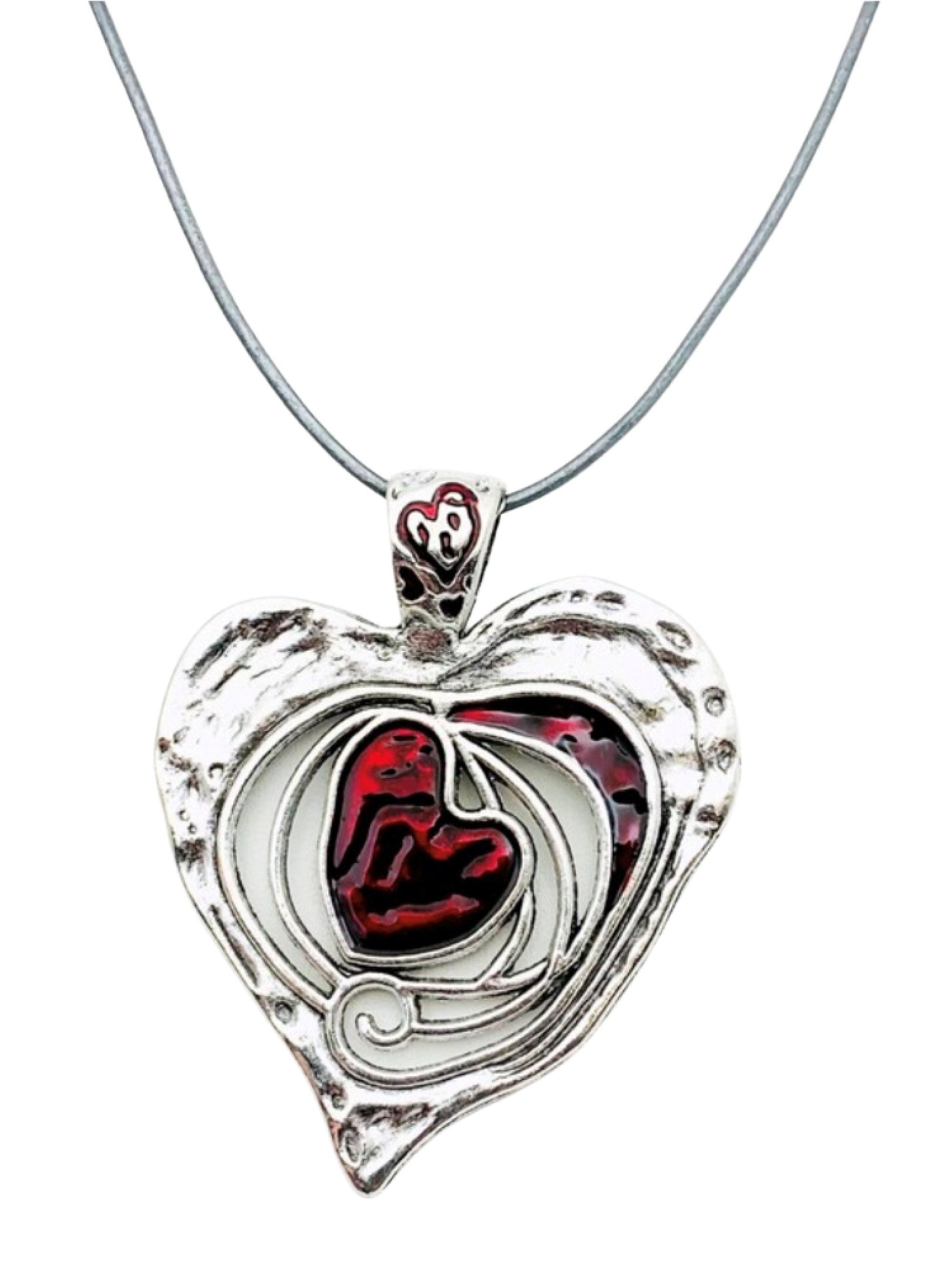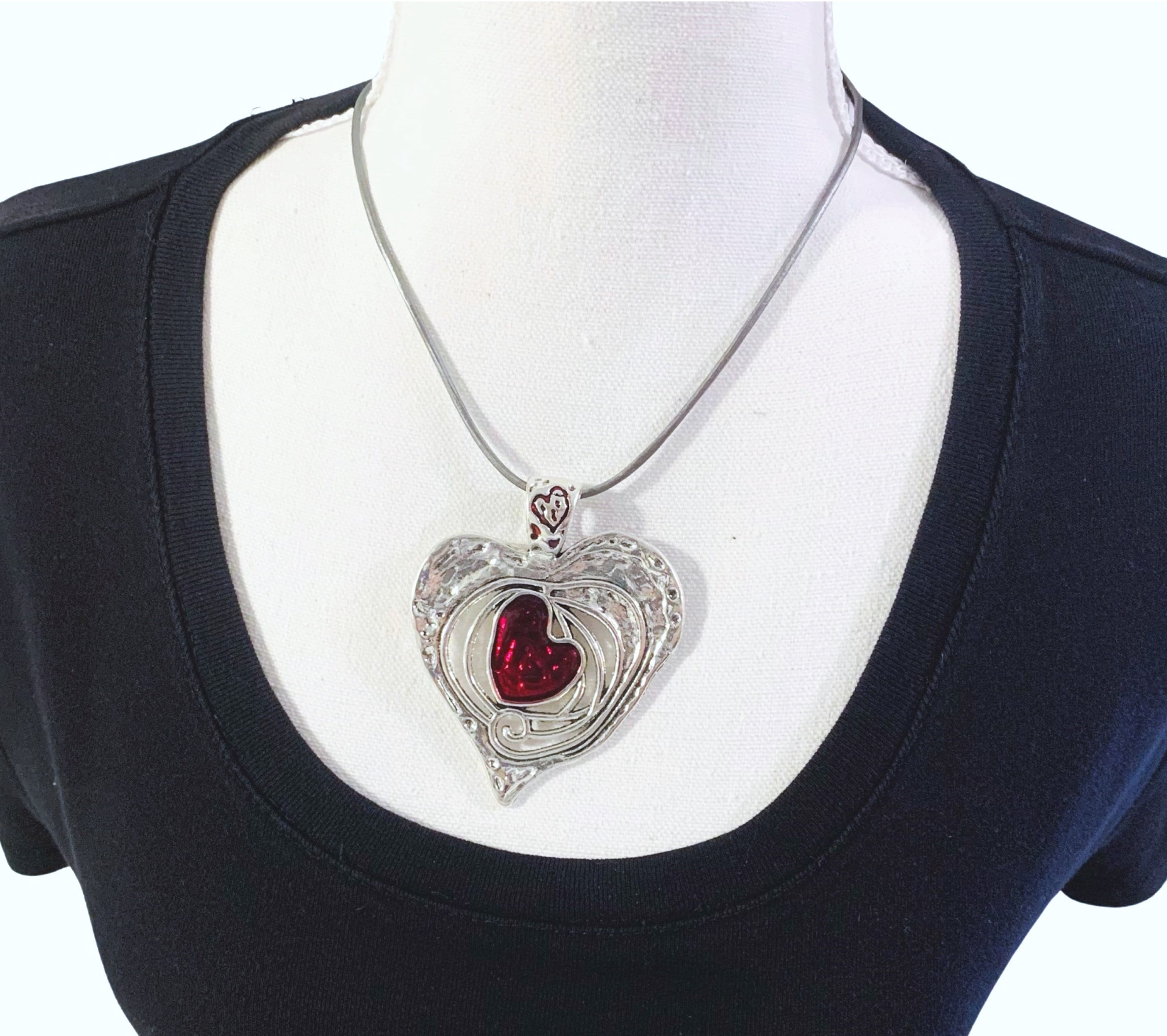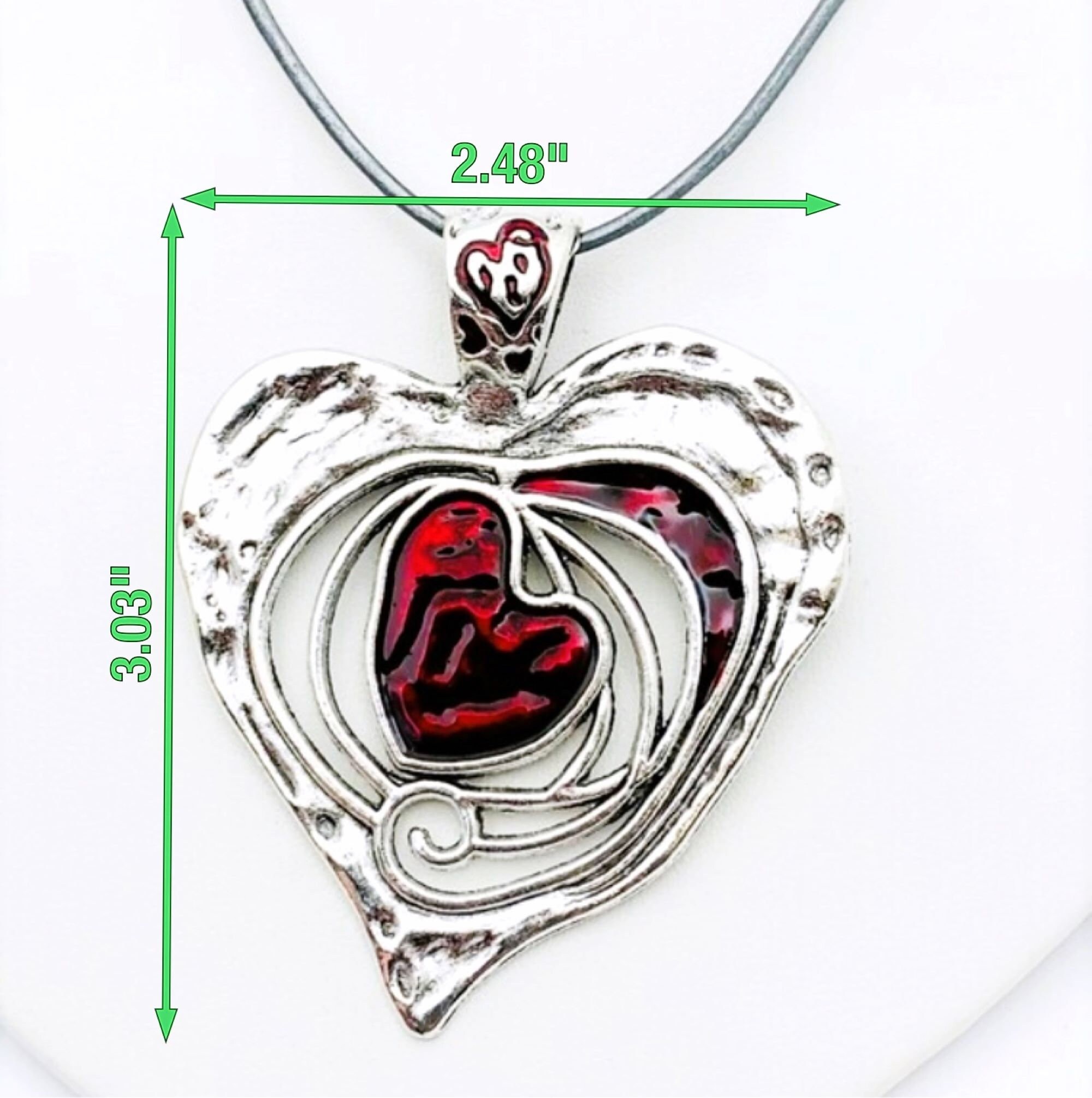 Silver Tone Alloy Enamel Heart Large Pendant on a 22" metallic dark grey 2mm genuine leather cord with an S clasp. Pendant size is 77mm/3.03"Long X 63mm/2.48"Wide. 3032482RedHrt