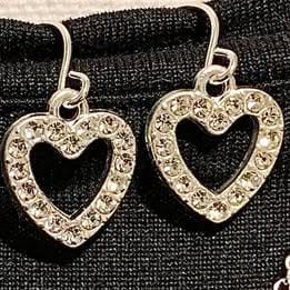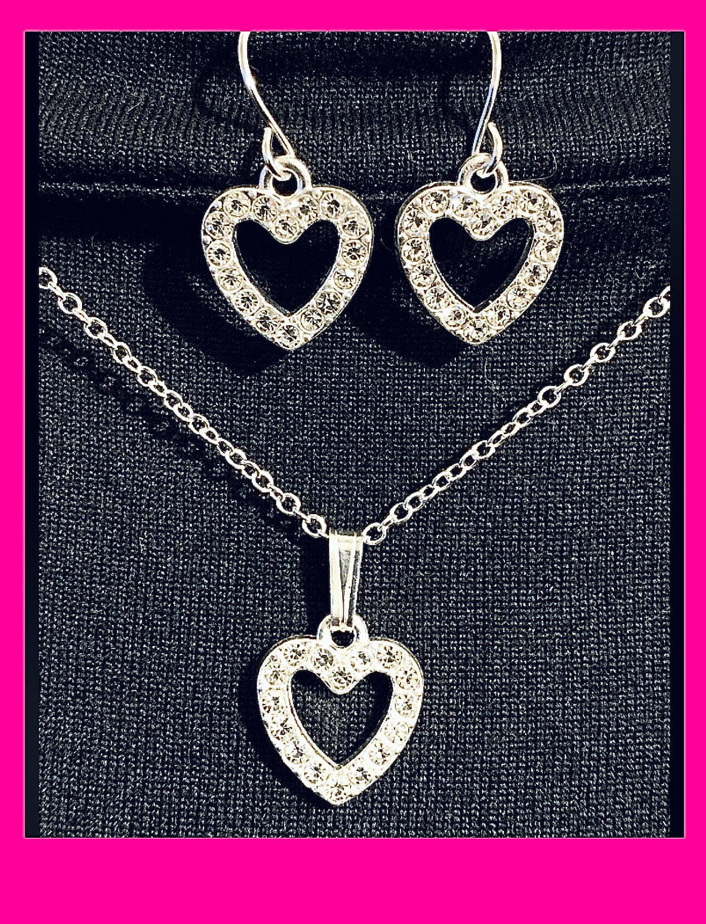 Silver Rhinestone Heart Necklace on a 20" 925 silver plated cable chain with a lobster claw clasp. Fishhook earrings are hypoallergenic 925 silver plated. Hearts are 14mm/.55"L X 12.5mm/.48"W. Heart Material: Made of high-quality alloy material with excellent workmanship, electroplated surface, wear-proof, corrosion Prevent, long service life. 0550482RstnHrt